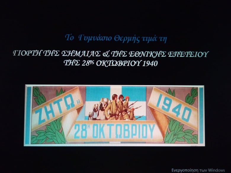 Την Τετάρτη 27 Οκτωβρίου 2021 έγινε στο Γυμνάσιο Θερμής ο εορτασμός της εθνικής επετείου της 28ης Οκτωβρίου 1940. Η γιορτή πραγματοποιήθηκε, λόγω των μέτρων προστασίας κατά της πανδημίας covid19, μέσα στις αίθουσες διδασκαλίας της κάθε τάξης. Συντελεστές της εκδήλωσης ήταν οι εκπαιδευτικοί Βίδη Ειρήνη, Γεωργέλλη Ευαγγελία, Καρακωνσταντή Ερατώ, Σαραντίδης Ευθύμιος, Μυτάρου Ελευθερία και Βρικέλλη Βασιλεία.